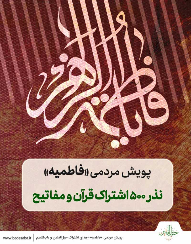 و حال که هنگامه عزای فاطمه(س) است، بادصبا ضمن تسلیت این ایام در این میعادگاه که پر از نام زهرا(س) است بنا دارد تا در «دهه فاطمیه» پویش مردمی نذر 500 اشتراک 2ماهه قرآن و مفاتیحالجنان برگزار کند تا به این واسطه آیات نور و ادعیه نورانی را در خانه دل شما همراهان همیشگی و عزیزانتان، به اشتراک بگذارد.